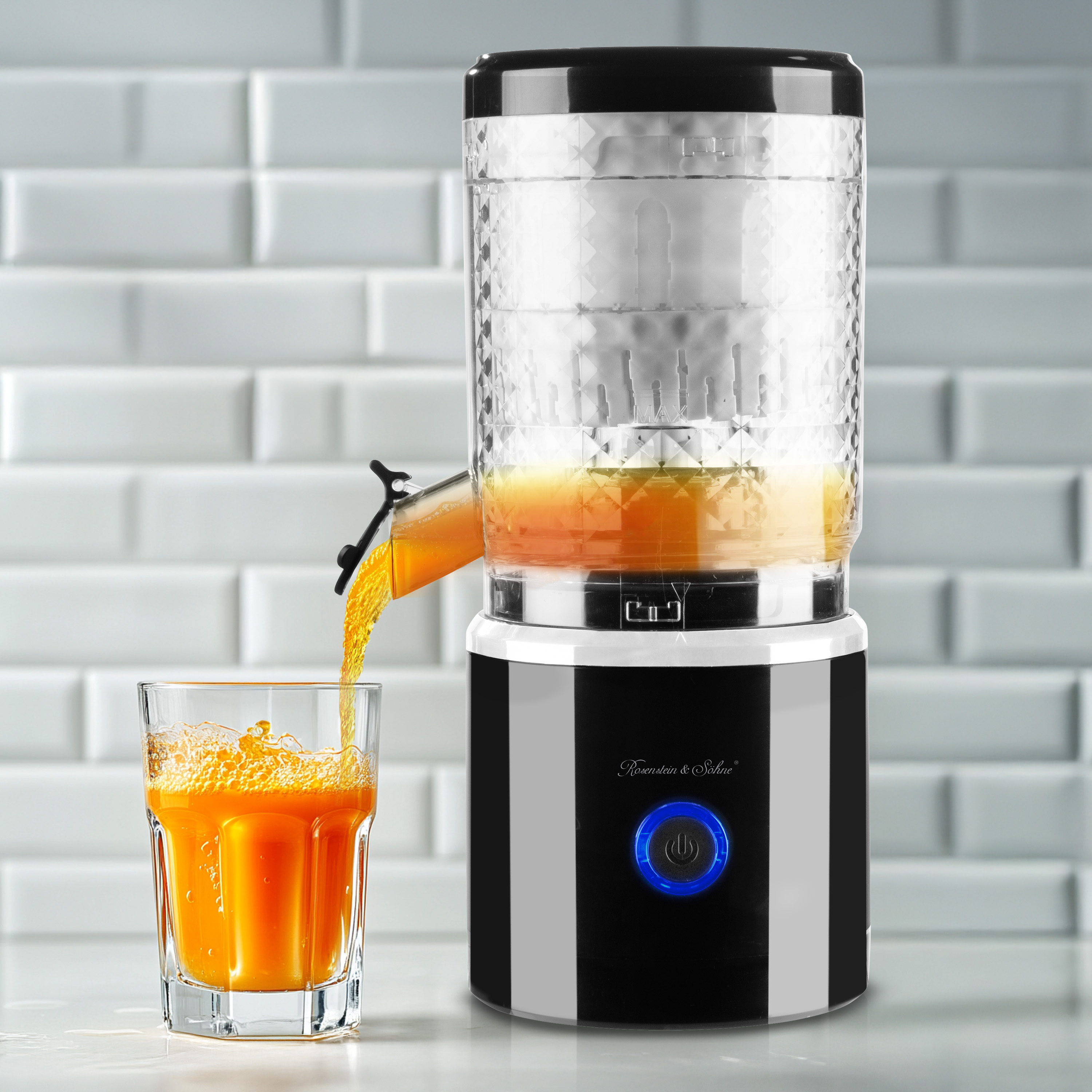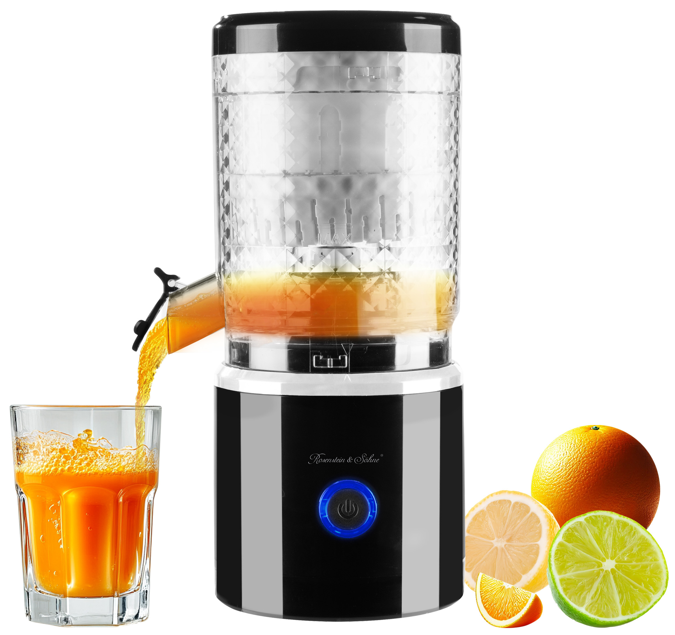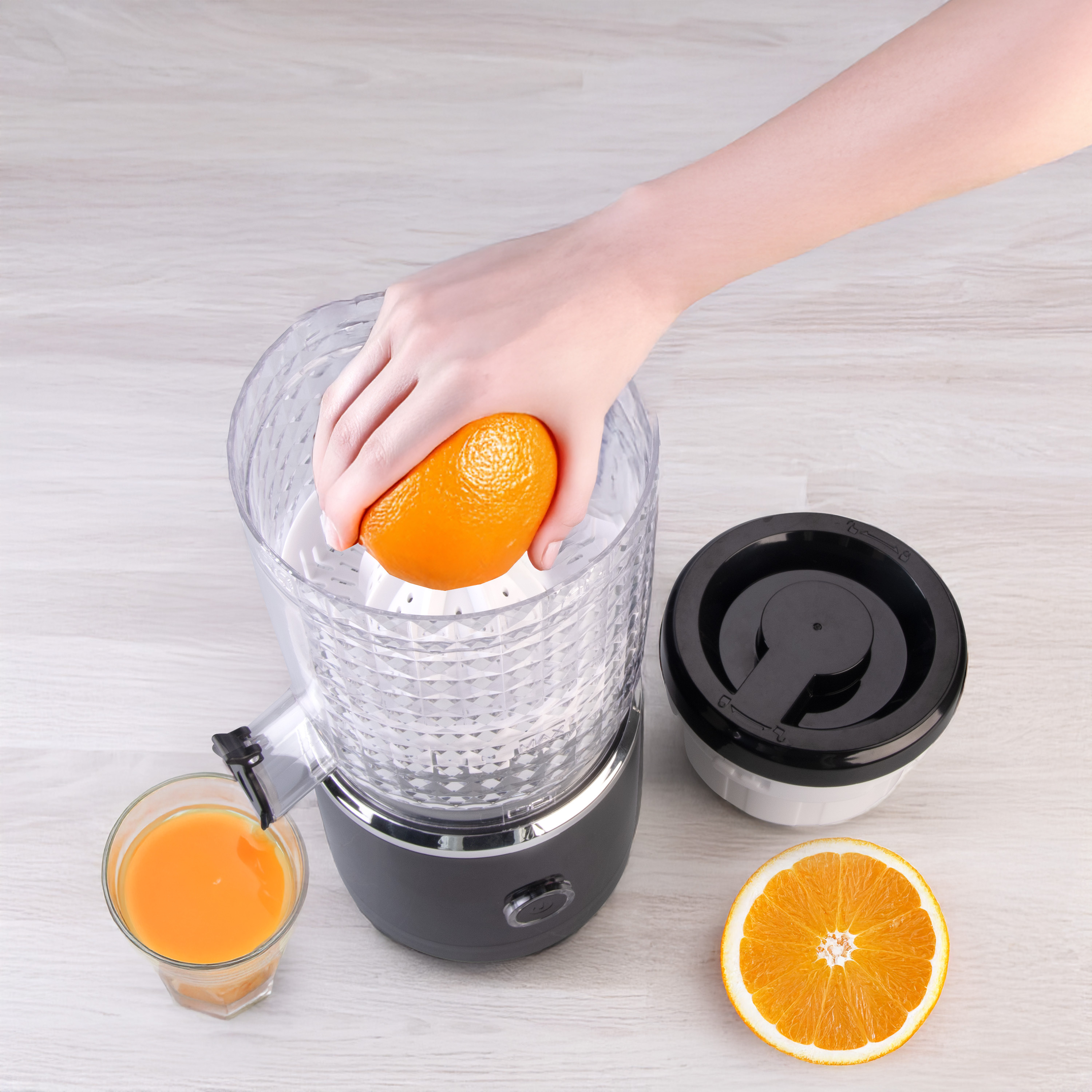 Ein kraftvoller Motor, der frische Drinks ermöglicht: Mit 15 000 U/min verarbeitet das Gerät Orangen, Mandarinen und sämtliche anderen Zitrusfrüchte mühelos; in nur wenigen Sekunden sprudelt ein frisch gepresster Saft heraus – ideal für einen vitaminreichen Start in den Tag, als erfrischende Pause oder das belebende Ritual nach dem Sport.