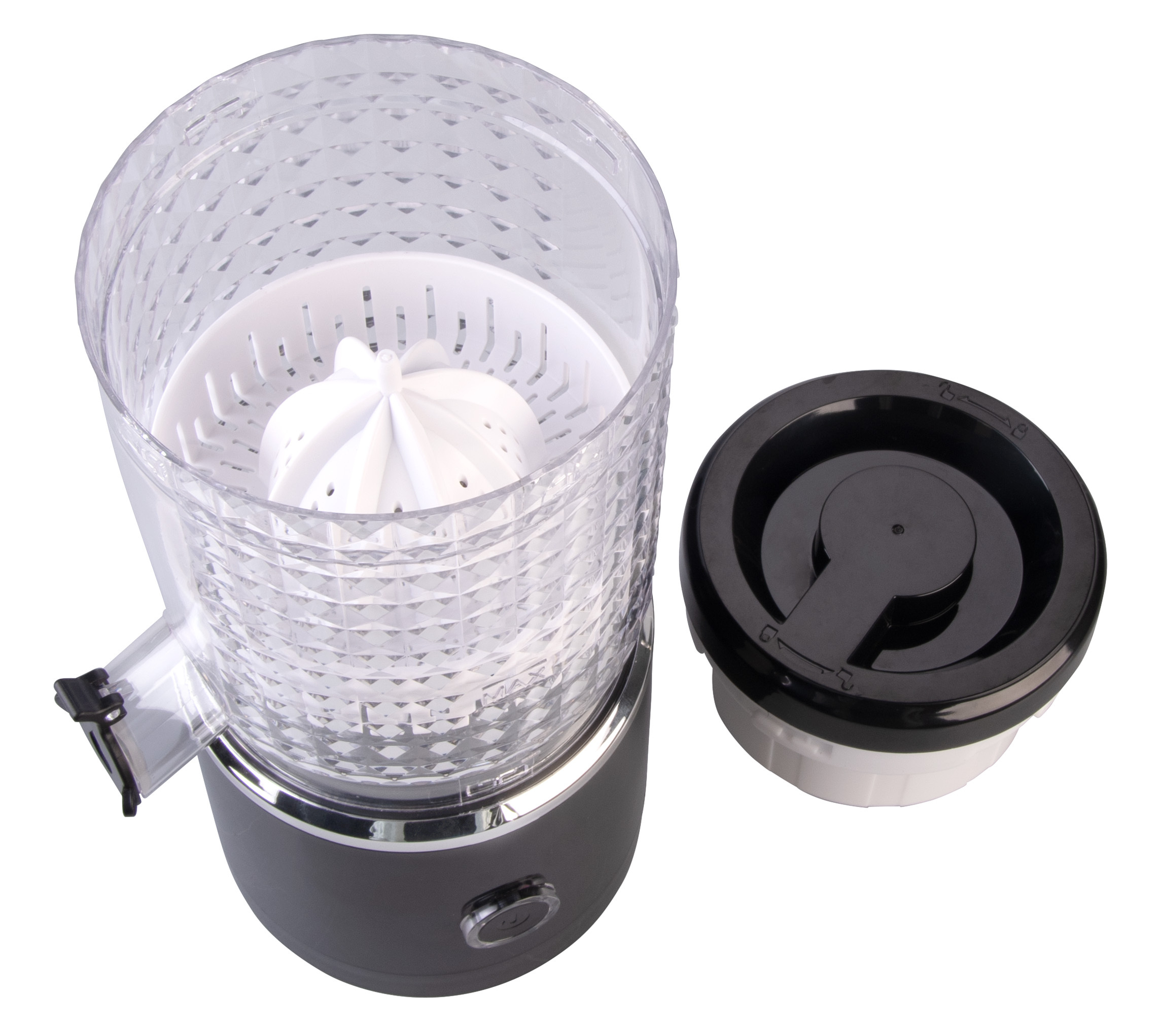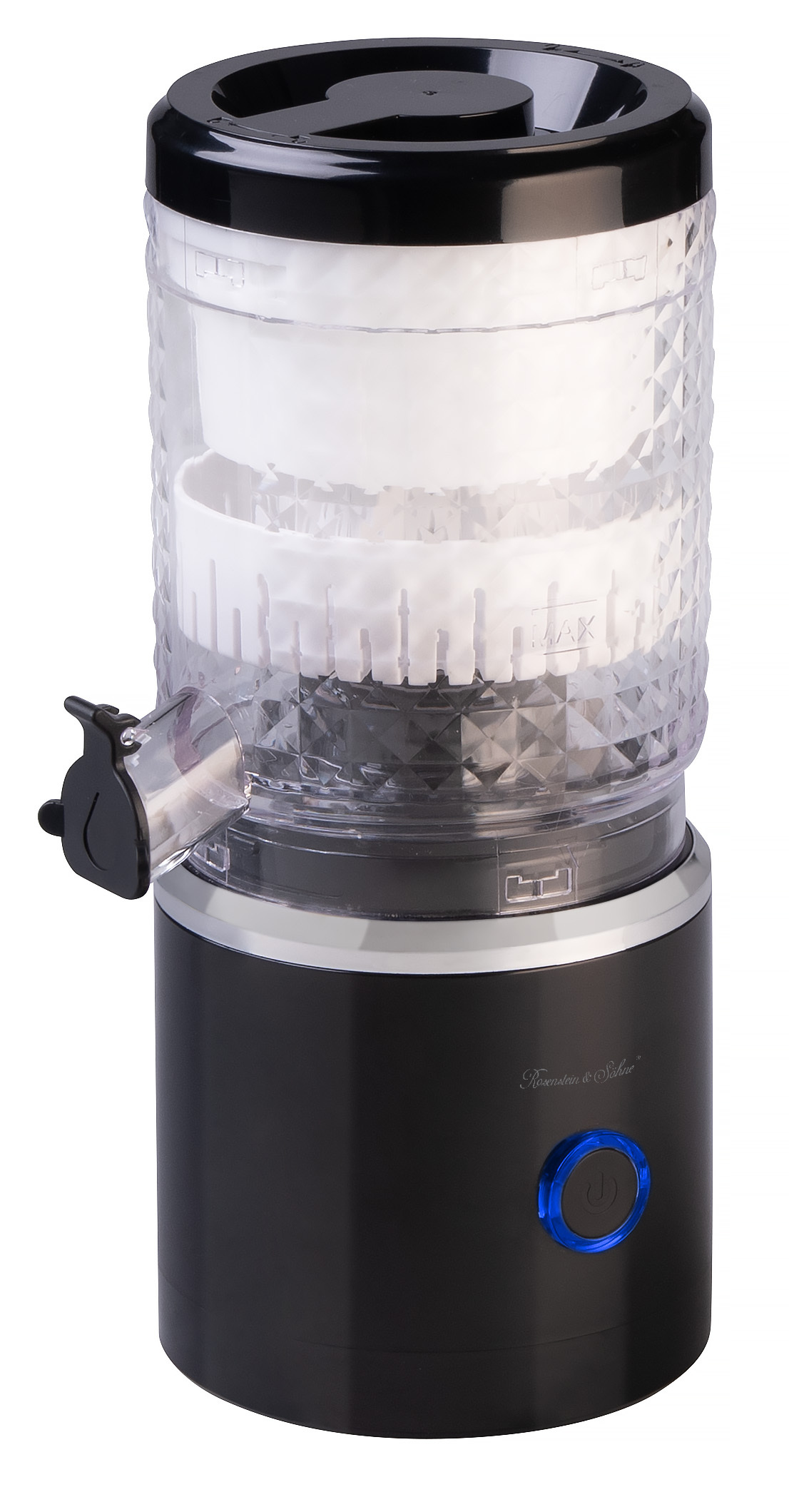 • Verschlusskappe, Mahlwerk und Saftbehälter sind spülmaschinengeeignet