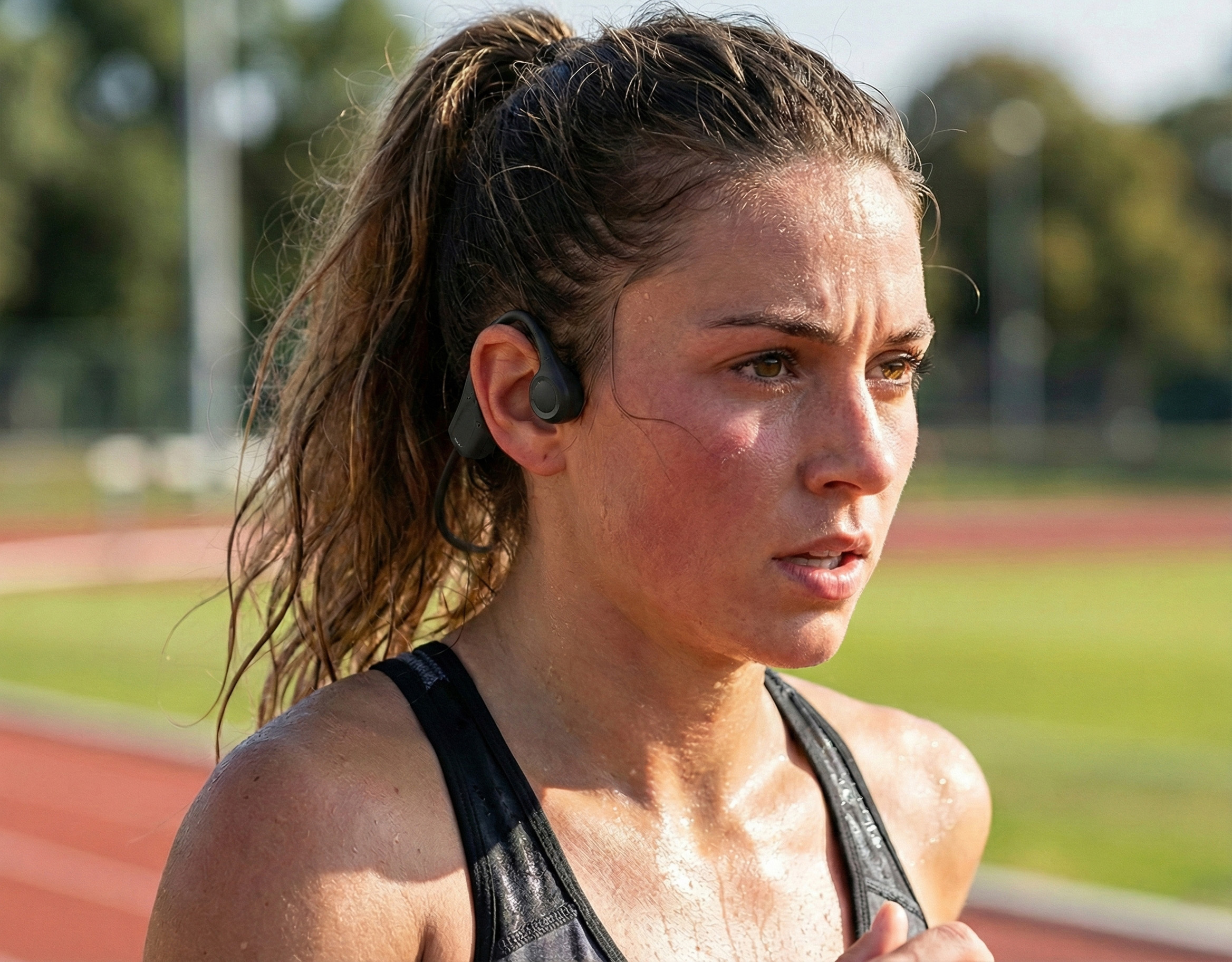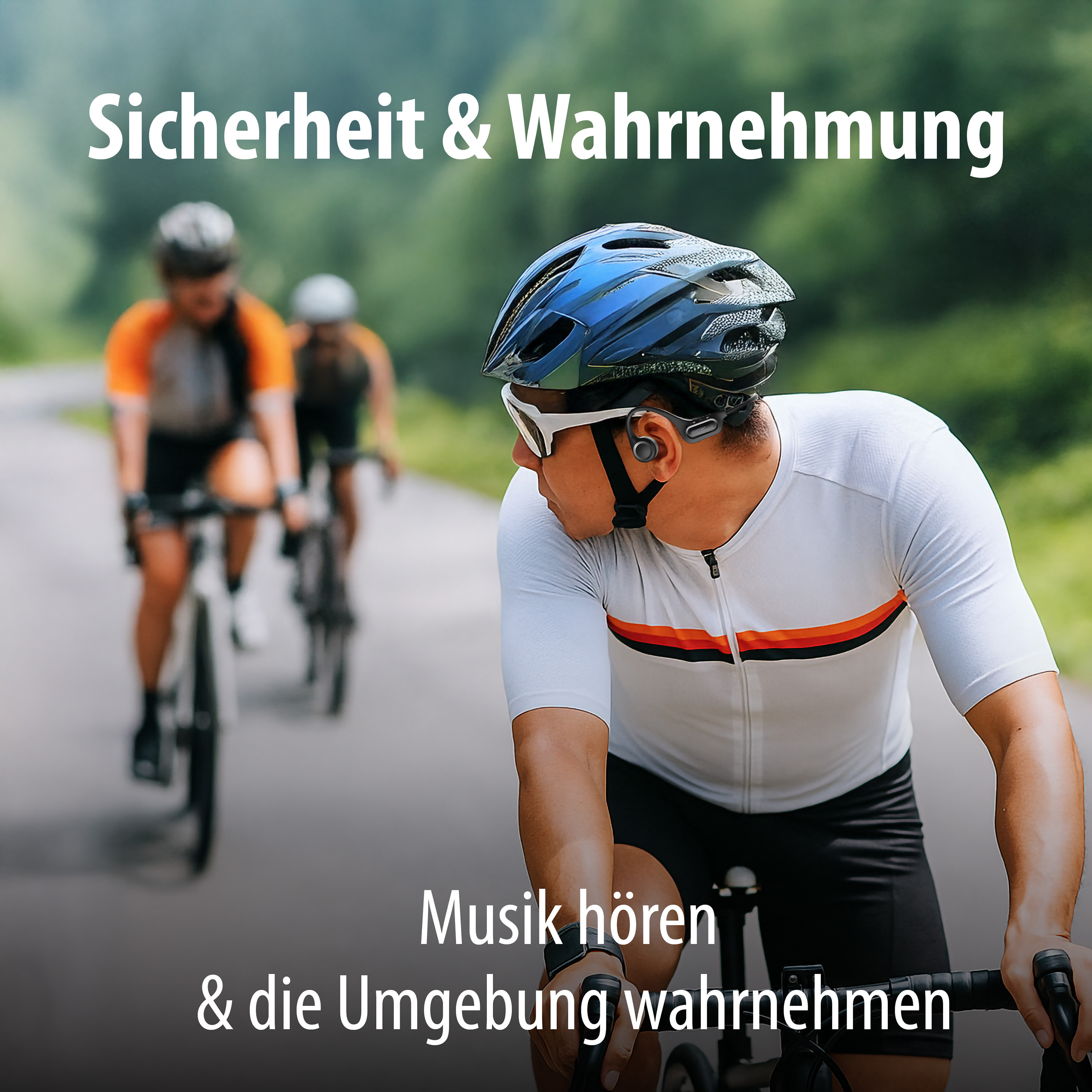 Knochenschall-Technologie erhält Umgebungswahrnehmung: Knochenschall-Kopfhörer übertragen Sound über die Knochen statt durch den Gehörgang. Die Ohren bleiben frei, wodurch Umgebungsgeräusche wie Autohupen, spielende Kinder oder Fahrradklingeln wahrnehmbar bleiben. Das erhöht die Sicherheit beim Musikhören unterwegs.